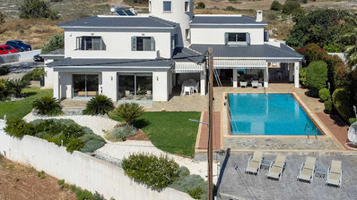 This spacious detached villa is set on a large 2,300 m² plot in a quiet area, offering privacy and beautiful sea and country views.