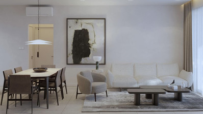* Open-plan living room, kitchen, and dining area