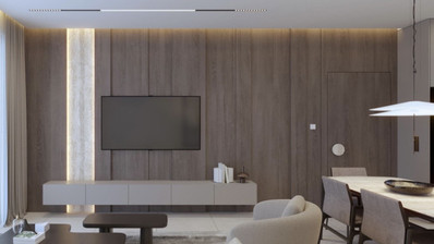 * Open-plan living room, kitchen, and dining area