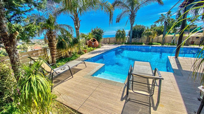 Large mature well maintained garden on top of the hill with panoramic sea views.